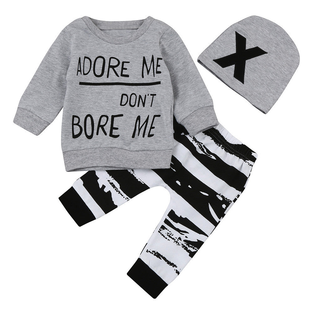 Brand Name: MUQGEWStyle: FashionMaterial: Cotton,PolyesterFabric Type: BroadclothGender: UnisexSleeve Length(cm): FullPattern Type: LetterCollar: O-NeckClosure Type: PulloverSleeve Style: RegularMaterial Composition: Cotton BlendModel Number: Baby Boy Girl Long Sleeve Letter Print Tops+Pant+Cap Clothes...